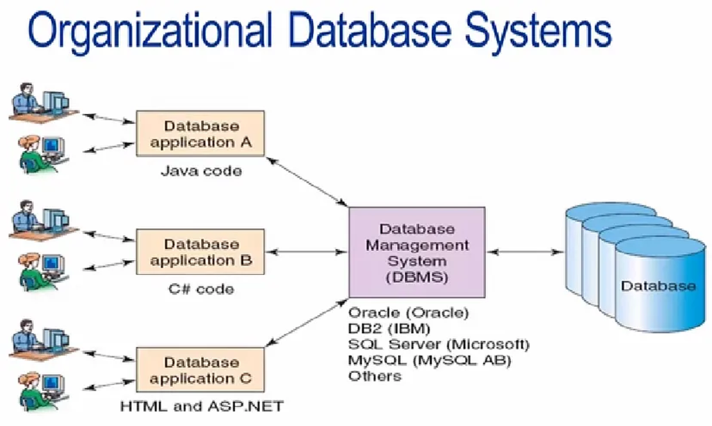 - Perangkat Lunak (Software) : Meliputi perangkat lunak Database Management System (DBMS) yang berfungsi untuk mengelola basis data, serta perangkat lunak aplikasi yang digunakan untuk mengakses data dari basis data.